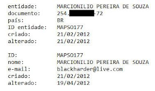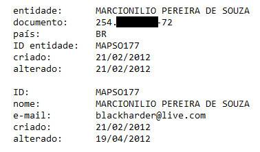 O cibercriminoso registrou o domínio usando as informações abaixo, provavelmente são dados falsos ou o dono do CPF sequer sabe que seu nome foi usado pra isso: