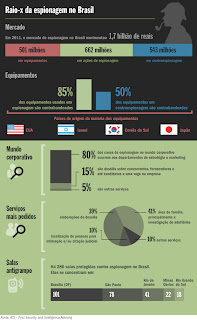 Recentemente a revista Veja publicou uma reportagem sobre "O mercado bilionário da espionagem no Brasil" aonde ela descreve algumas características e estatísticas do mercado de espionagem pessoal e empresarial.